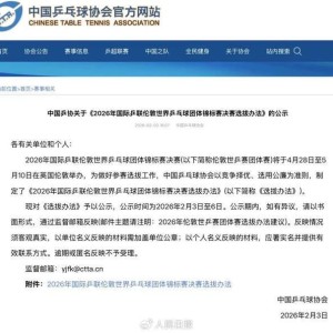 据人民日报消息,2月3日,中国乒协在官网公示《2026年国际乒联伦敦世界乒乓球团体锦标赛决赛选拔办法》。中国乒协称,依据...