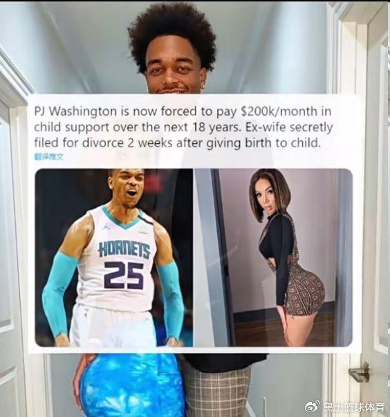 北京时间9月4日,根据美媒报道,达拉斯独行侠球星PJ-华盛顿现在每个月要给前妻20万美元的抚养费,直到孩子成长到18岁。更惨的是,前妻在生下孩子后两周秘密申请了离婚。